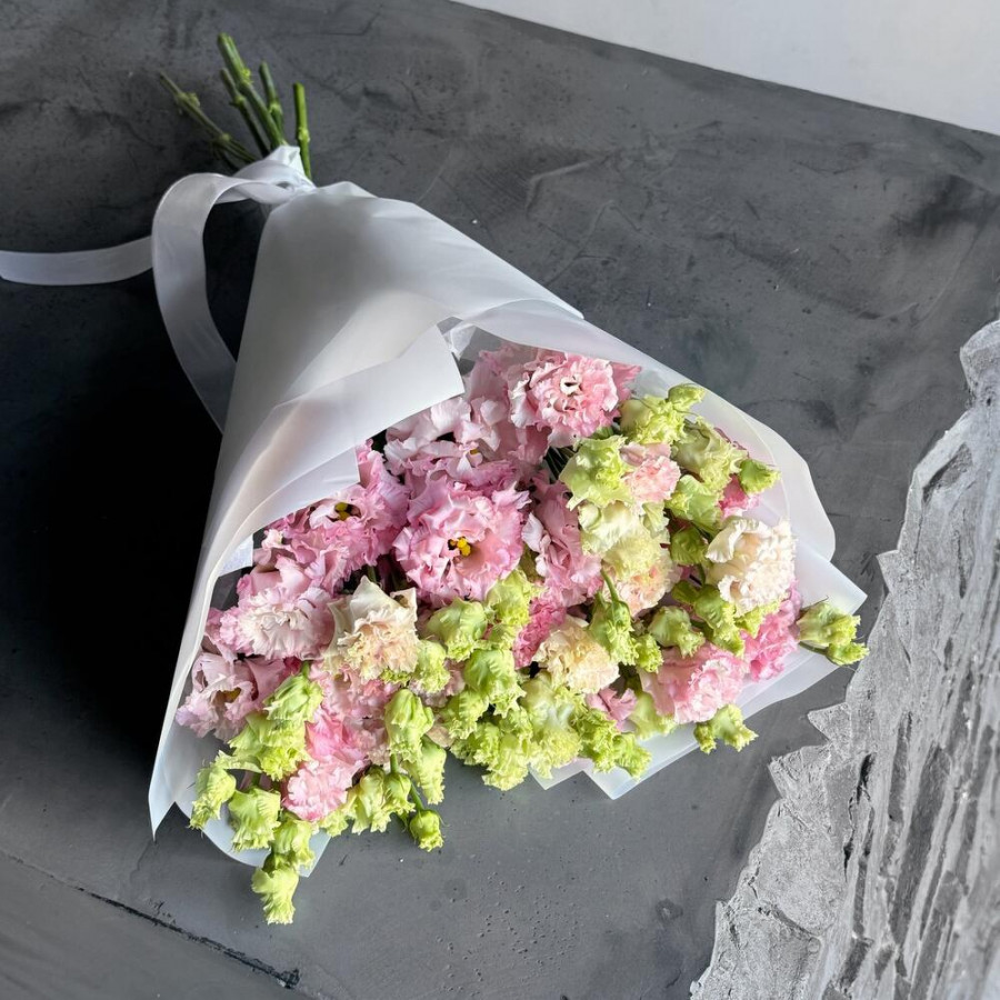 Букет из белой эустомы и розовых гвоздик