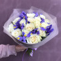 Букет из белых роз и синих ирисов в Саранске